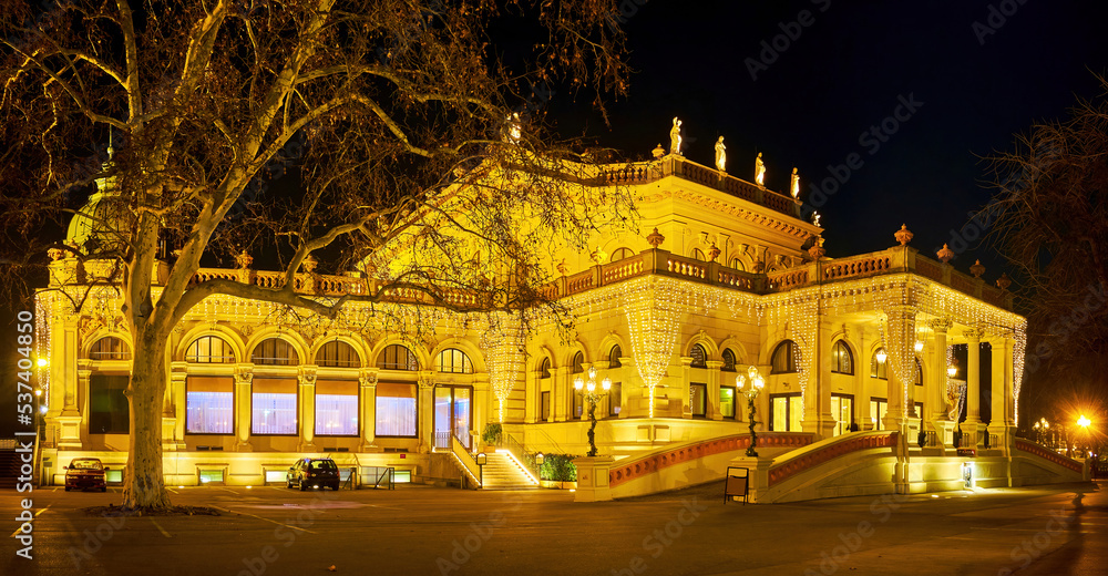 Fototapeta Panorama of Kursalon building in night lights, located in Stadtpark of Vienna, A