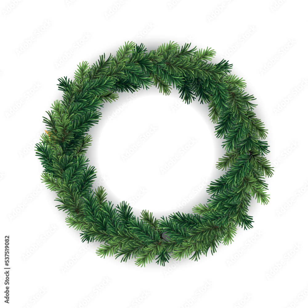 Fototapeta Vector christmas decorative round wreath frame with coniferous branches isolated