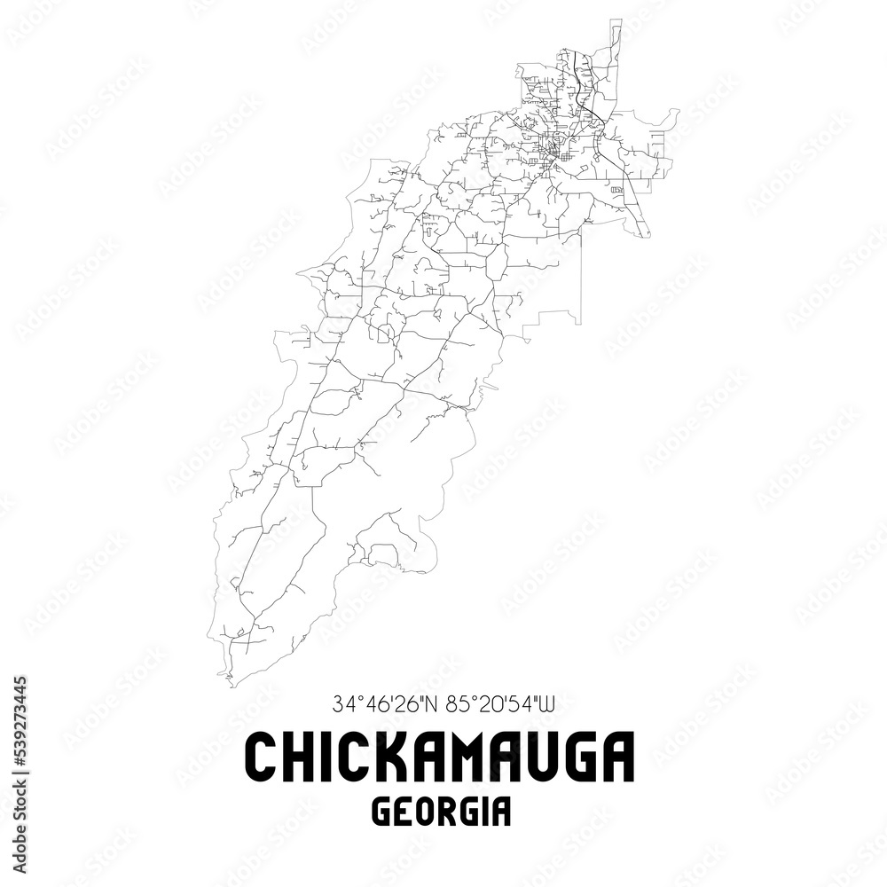 Fototapeta Chickamauga Georgia. US street map with black and white lines.