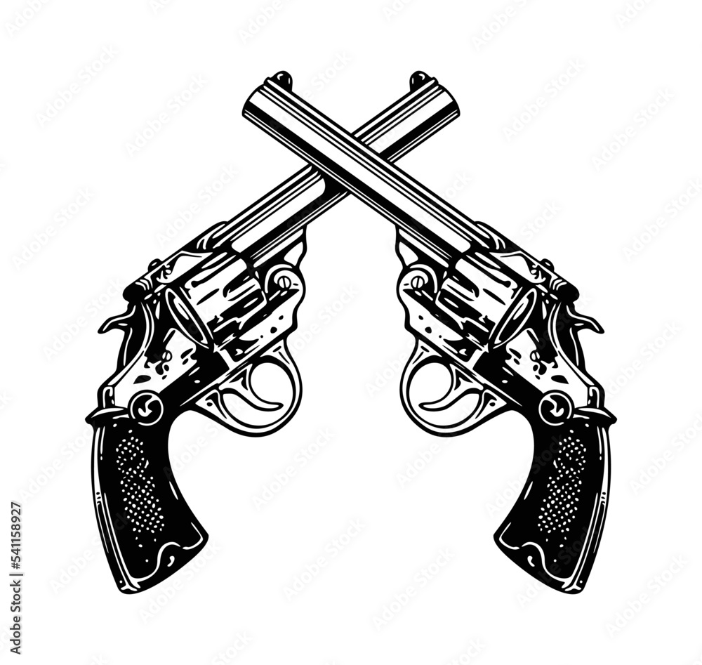 Fototapeta twin crossed revolvers pistols black and white