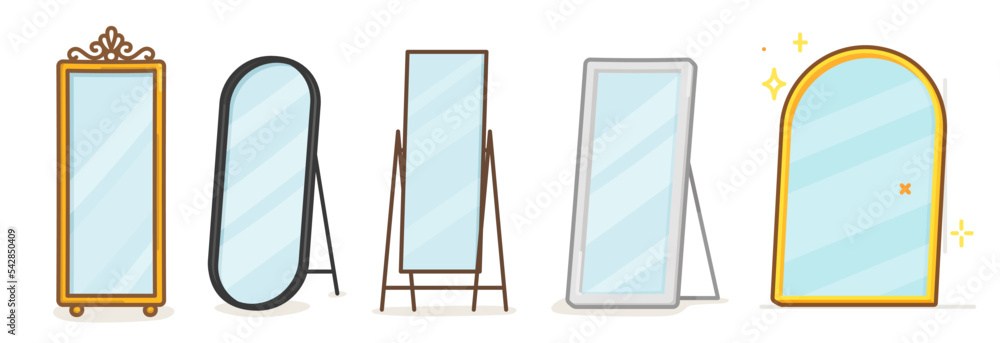 Fototapeta minimal luxury standing mirror kawaii doodle flat cartoon vector illustration