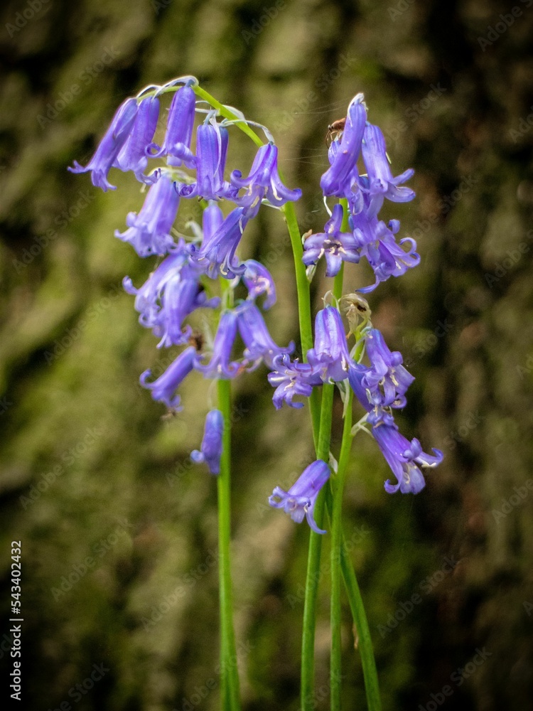 Fototapeta Vertical closeup of English bluebells (Hyacinthoides non-scripta) against blurre