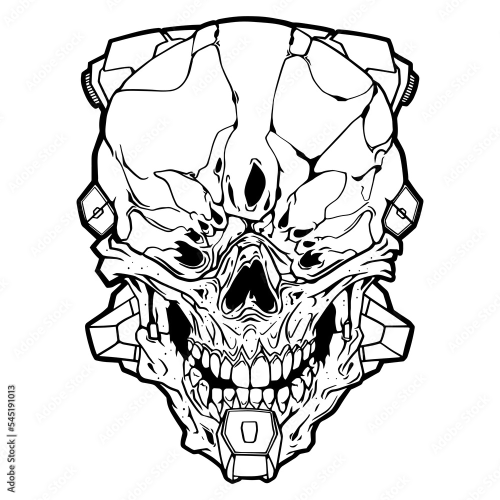 Fototapeta Skull cyber punk mutant head in suite