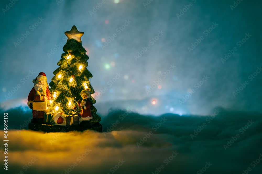 Fototapeta harmonious christmas background with santa, christmas tree and presents