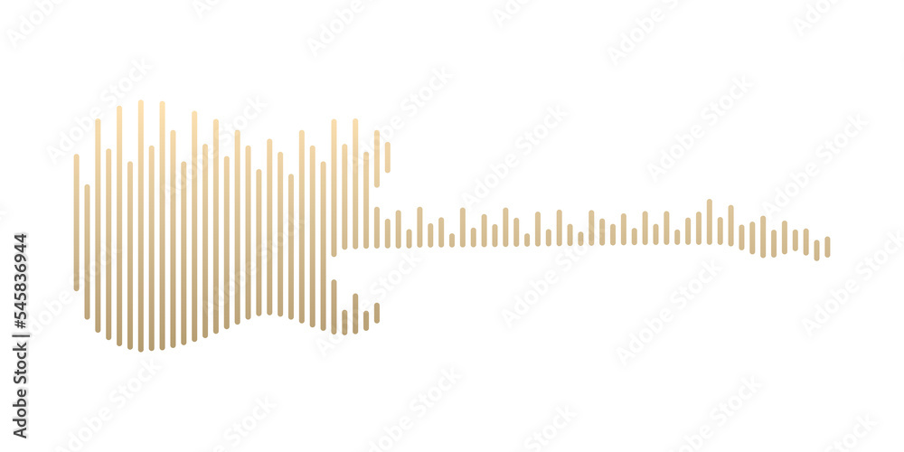 Fototapeta Electric guitar shape by equalizer strip line pattern gold gradient color isolated on transparent background