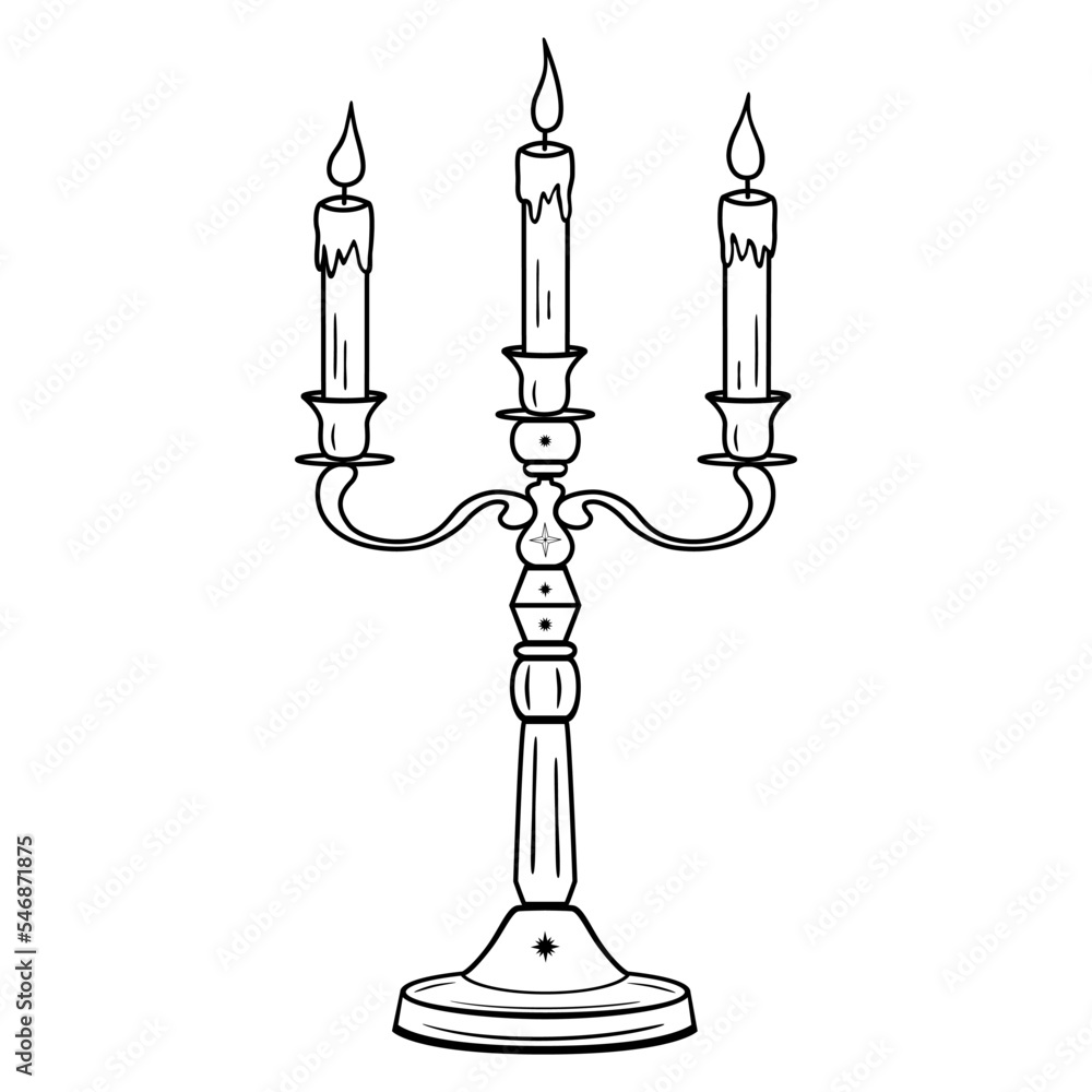 Fototapeta Hand drawn candelabrum with burning candles and stars in line art