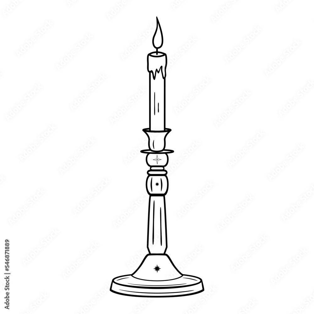 Fototapeta Hand drawn candelabrum with burning candle and stars in line art