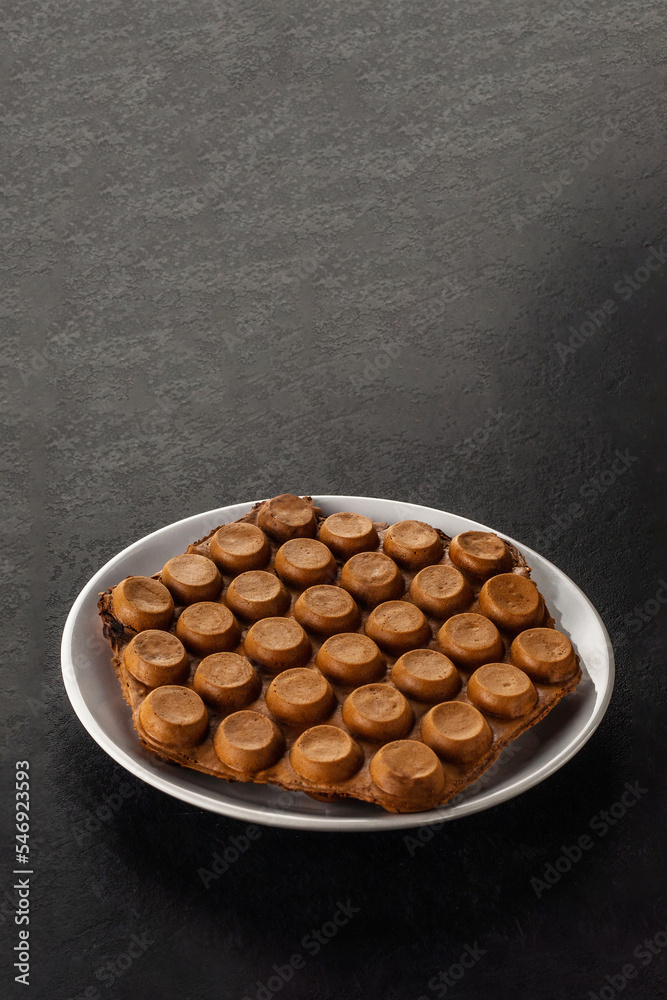 Fototapeta Hong Kong chocolate bubble waffle on dark background with copy space