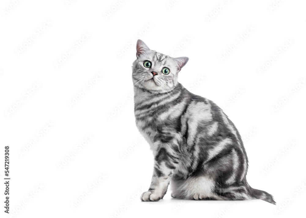 Fototapeta Kitten British shorthair silver tabby cat portrait.
