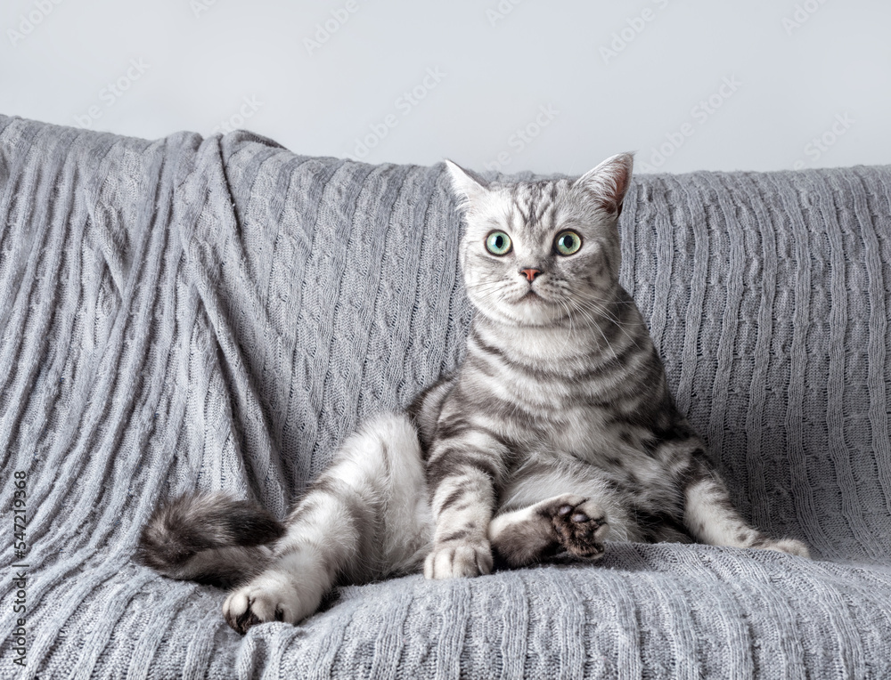 Fototapeta Kitten British shorthair silver tabby cat play at home