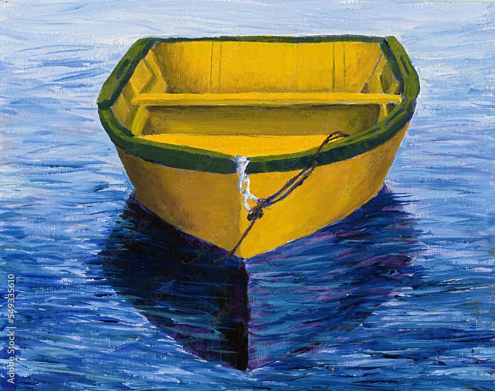 Fototapeta Yellow rowboat vivid acrylic painting.