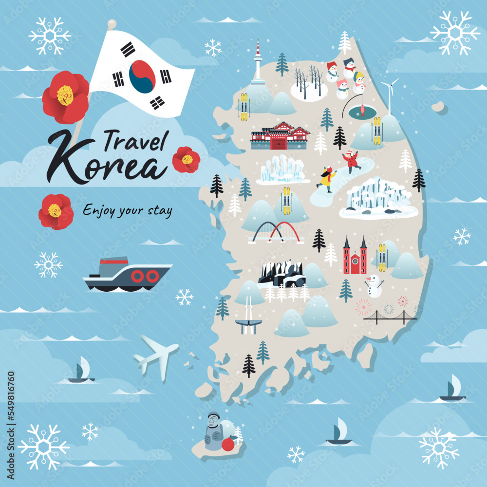 Fototapeta South Korea winter travel map vector illustration