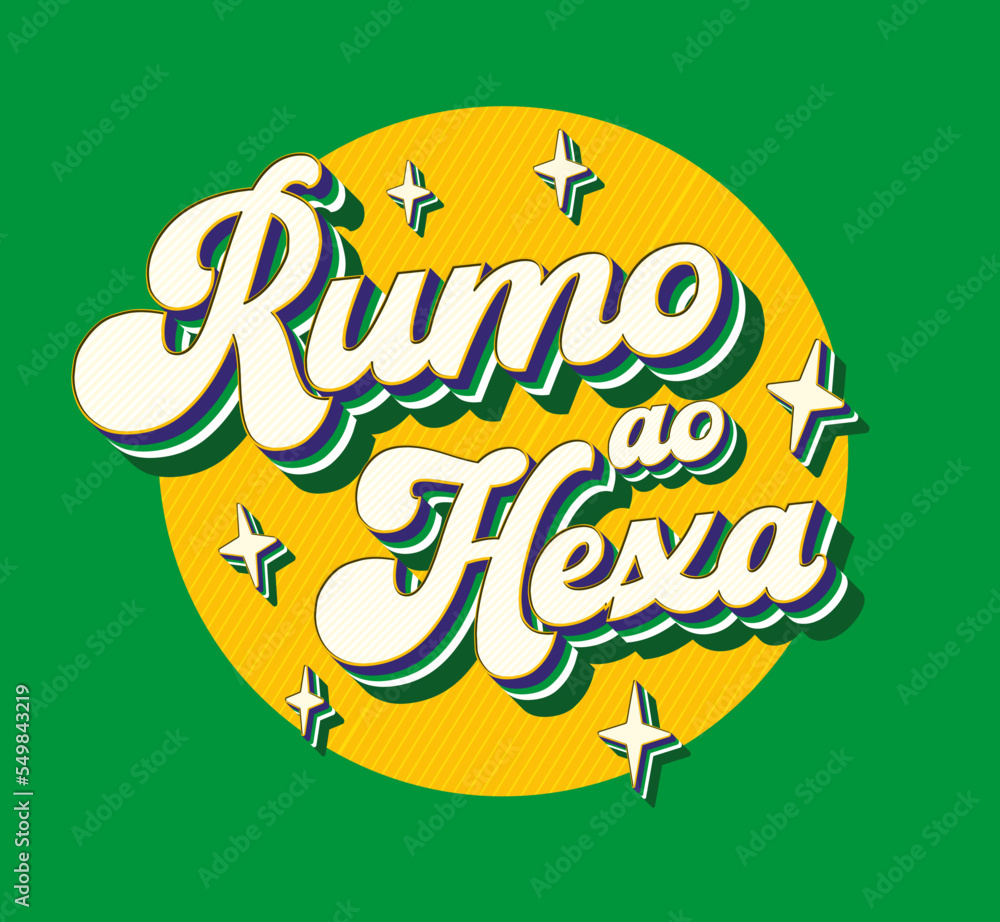 Fototapeta Rumo ao hexa em vetor estilo retrô anos 90 para campanhas de torcida pelo Brasil