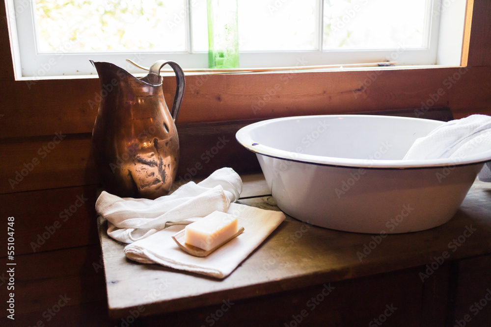 Fototapeta old wash basin in old room