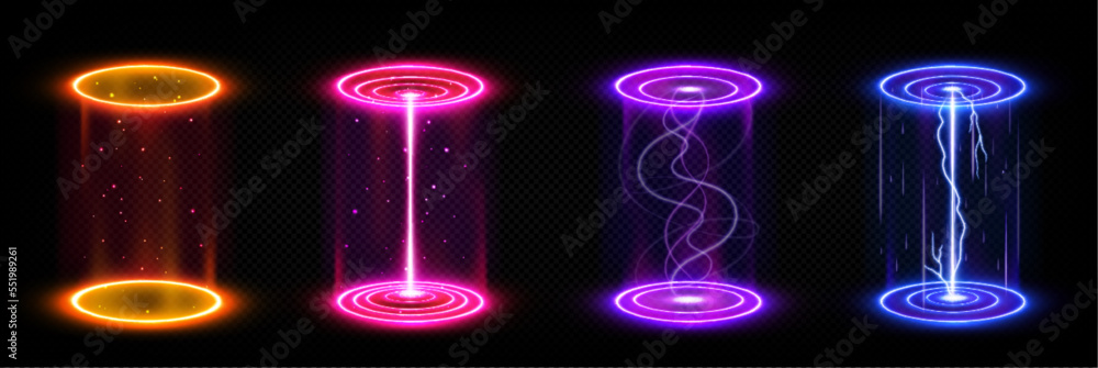 Fototapeta Futuristic portals, magic hologram teleport with round podium