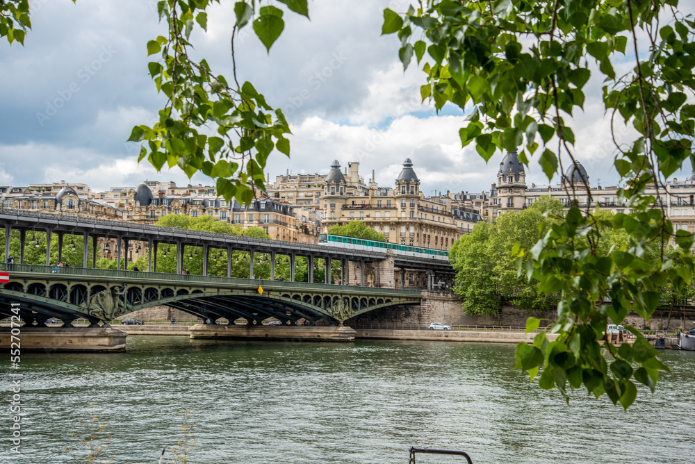 Fototapeta A metro crossing the bridge Bir Hakeim over the Seine in Paris