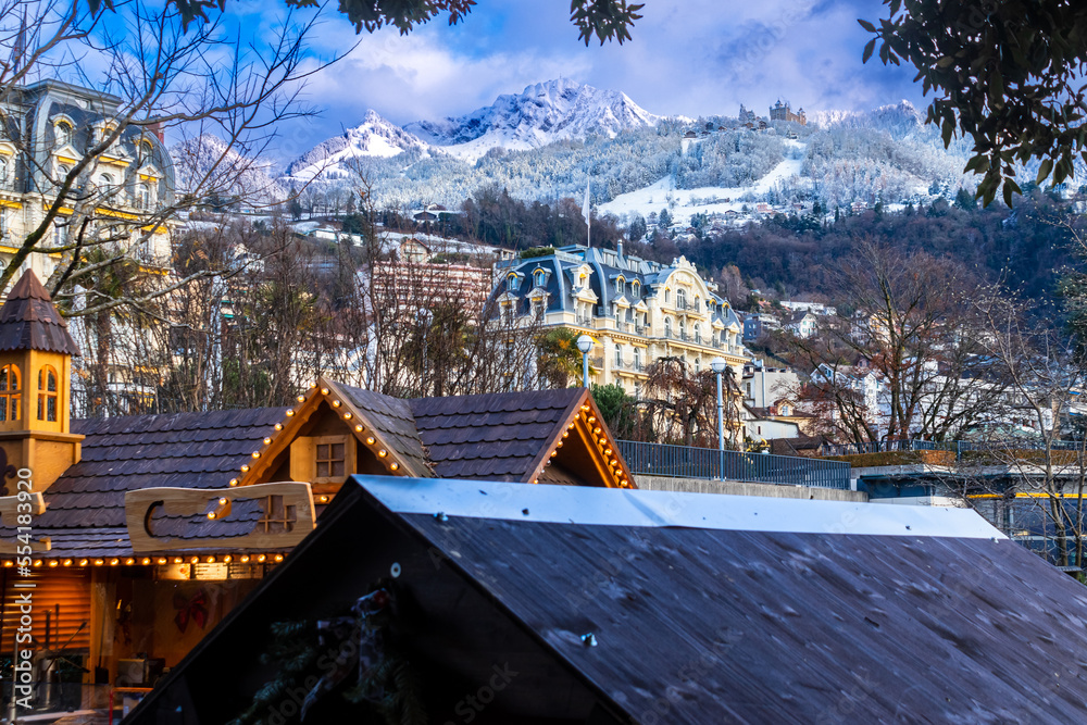 Fototapeta Winter in the city of Montreux, and on Lake Geneva in Switzerland