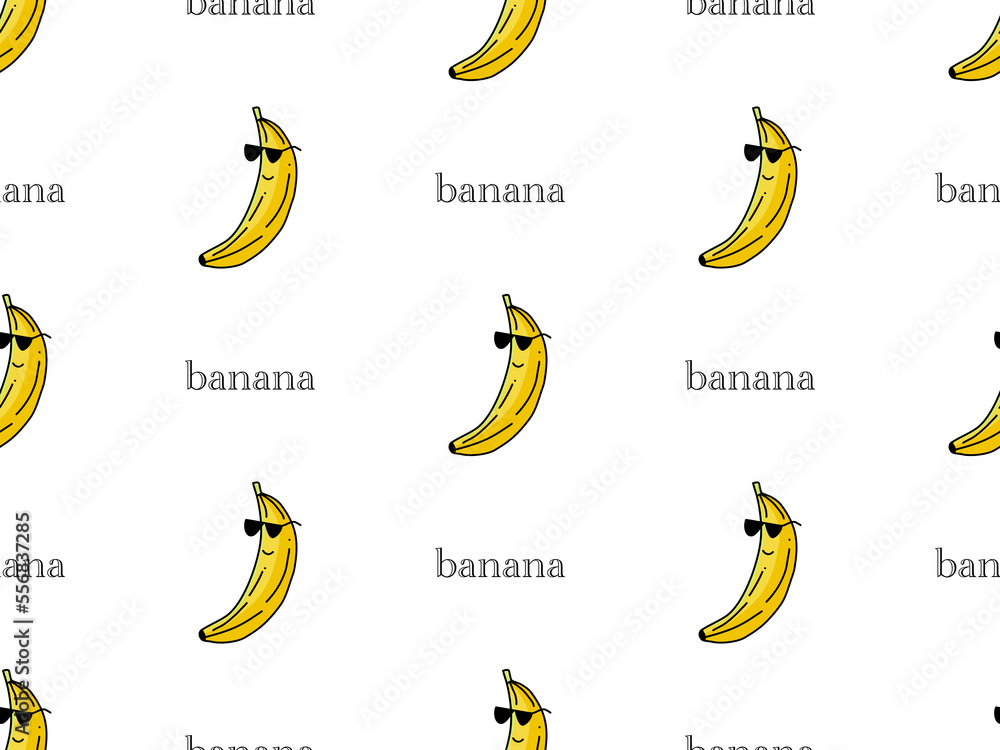 Fototapeta Banana cartoon character seamless pattern on white background