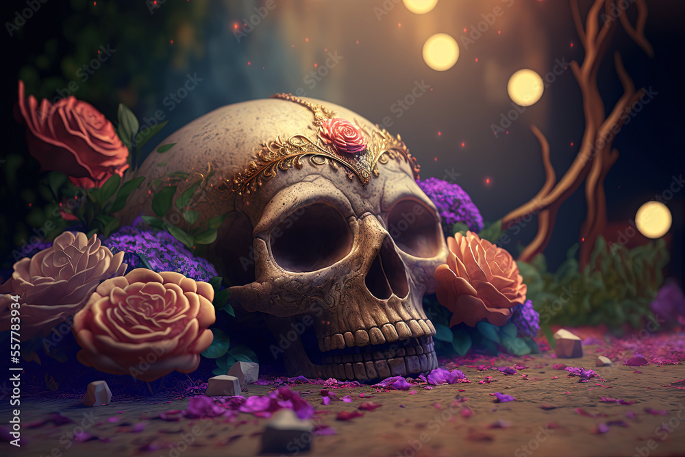 Fototapeta Calavera (Mexican Sugar skull), colorful, floral skull for dia de los muertos (D