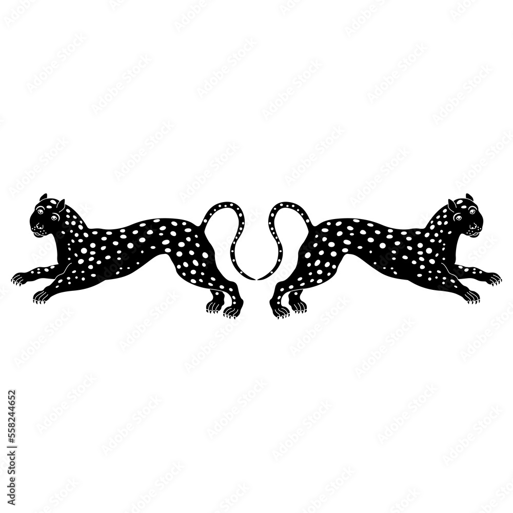Fototapeta Symmetrical animal design or frame with two stylized spotted wild cats or leopards