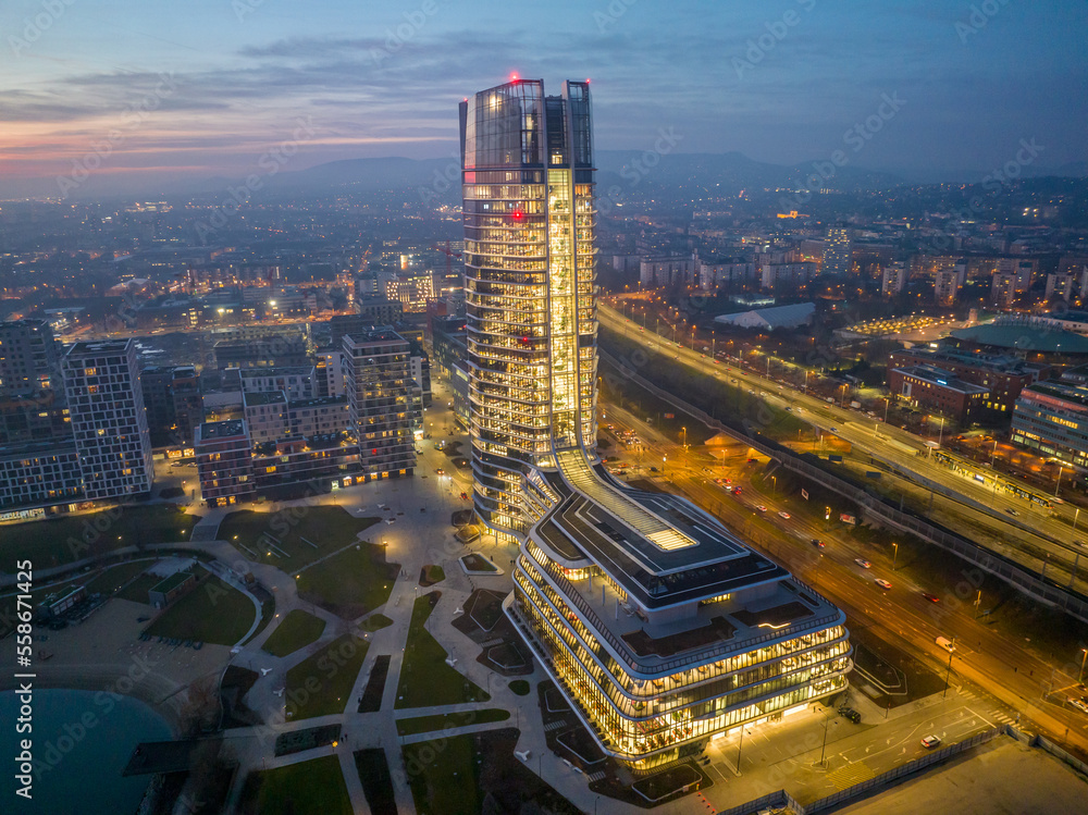 Fototapeta Hungary - Budapest landscape with the amazing highest skyscraper (MOL HQ) from d