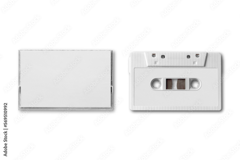 Fototapeta Blank cassette tape mockup with cover isolated on a background