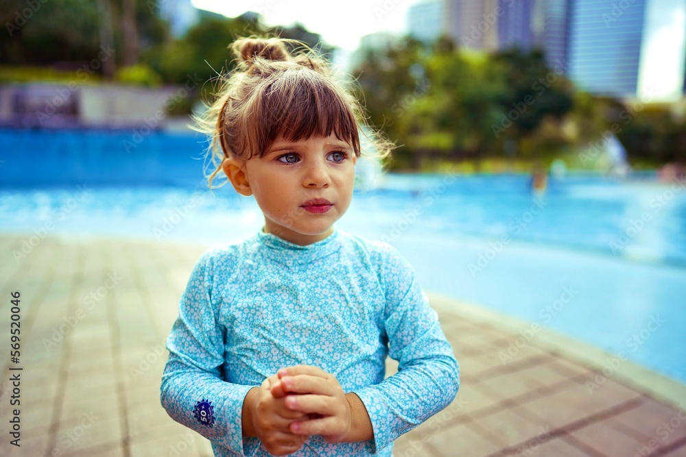 Fototapeta child in kuala lumpur malaysia on the playground twin towers