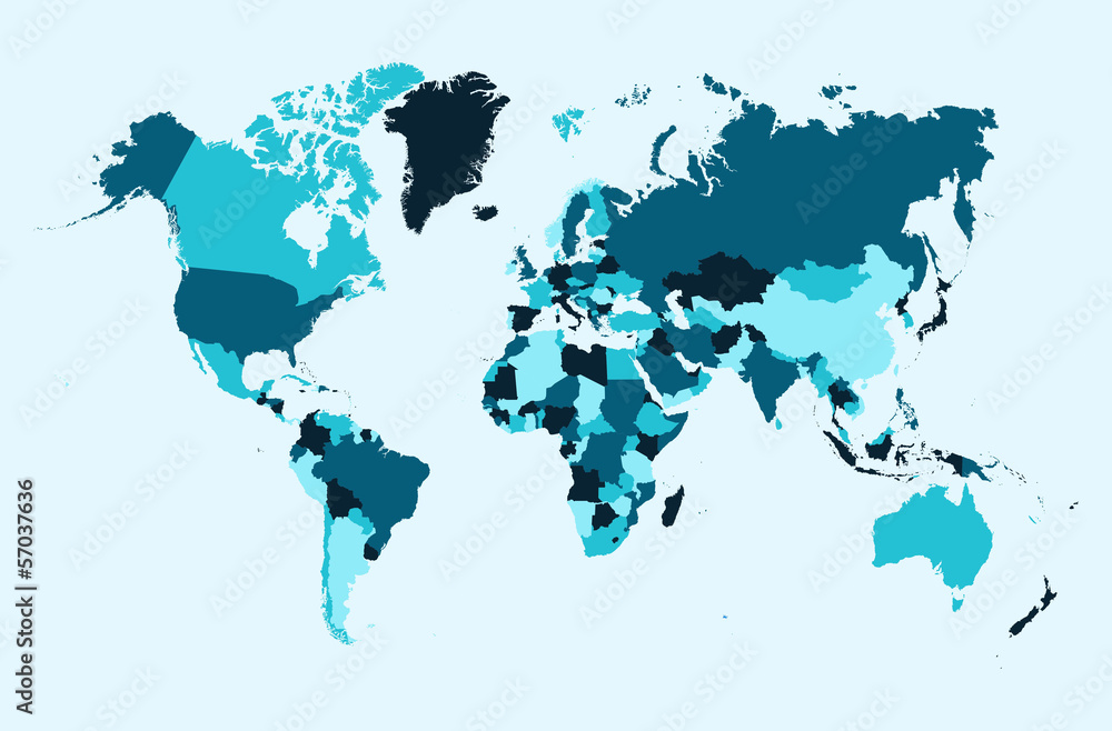 Fototapeta World map, blue countries illustration EPS10 vector file.