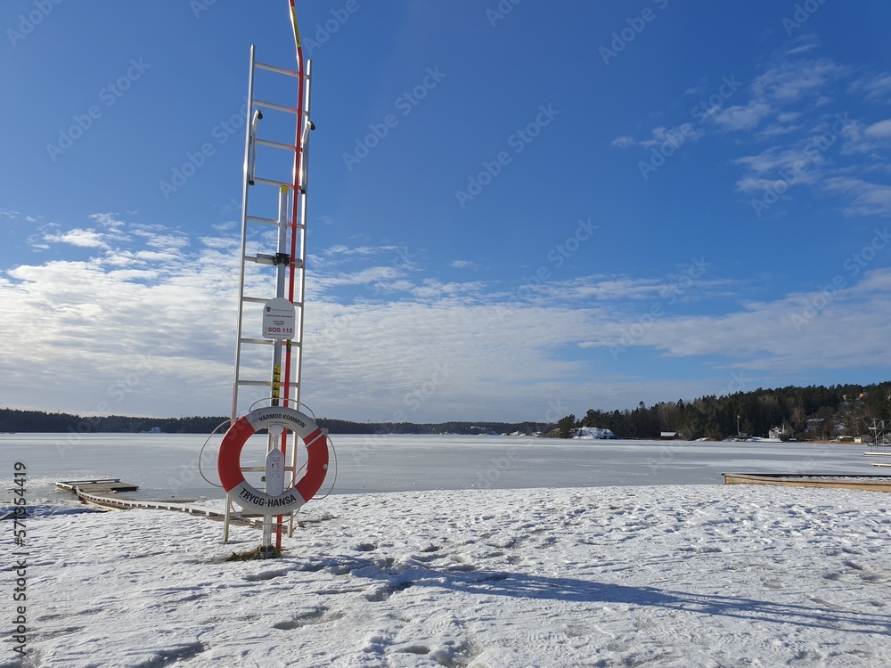 Fototapeta Winter scenery on the coast in the Swedish archipelago near Stockholm
