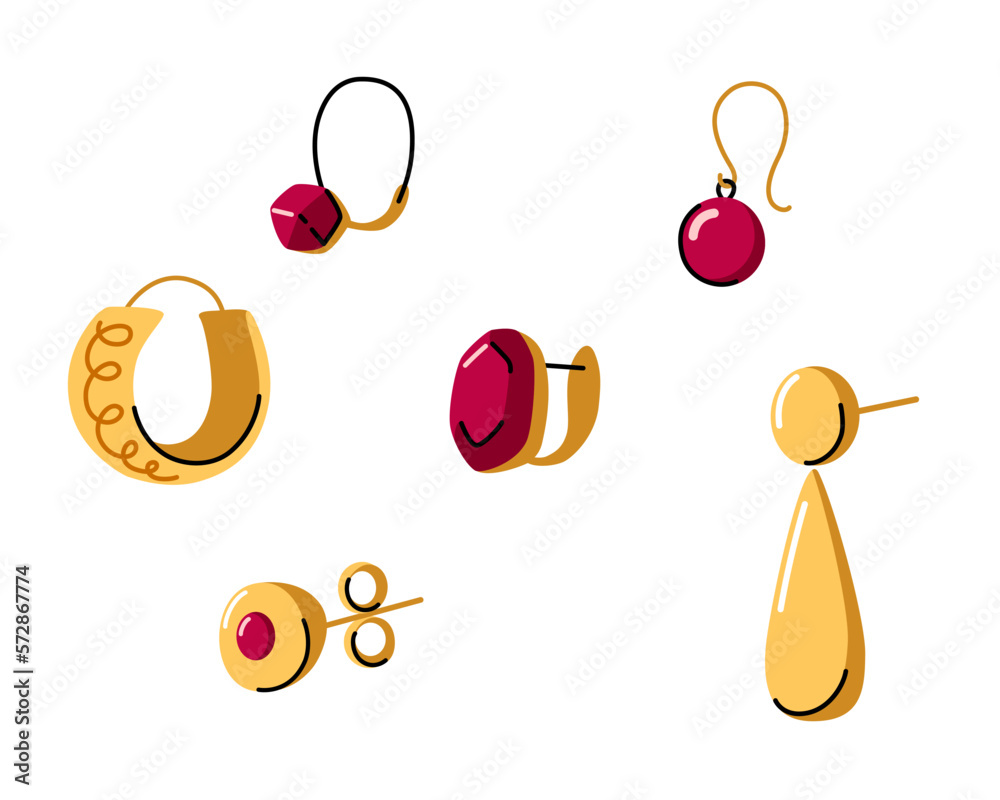 Fototapeta Golden hoop earrings doodle hand drawn flat illustration hand made jewelry concept