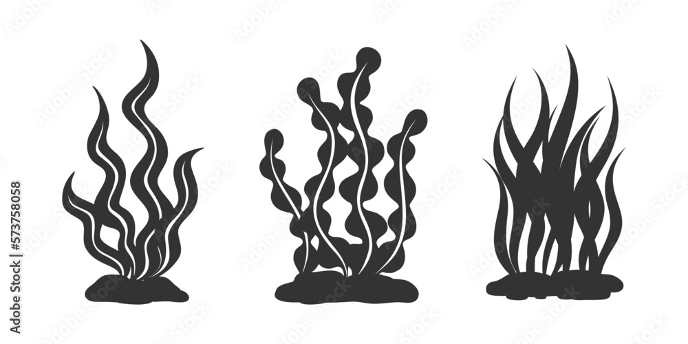 Fototapeta Seaweeds and underwater plants silhouette vector collection