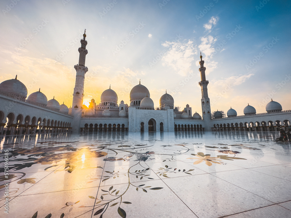 Fototapeta The Sheikh Zayed Grand Mosque during sunset, in Abu Dhabi, United Arab Emirates