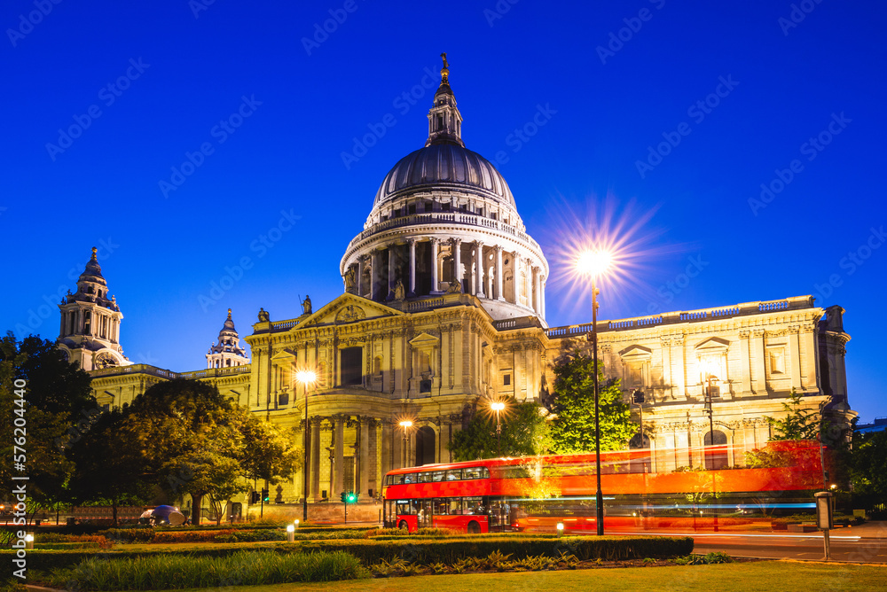 Fototapeta Night view of St Paul Cathedral in London, uk