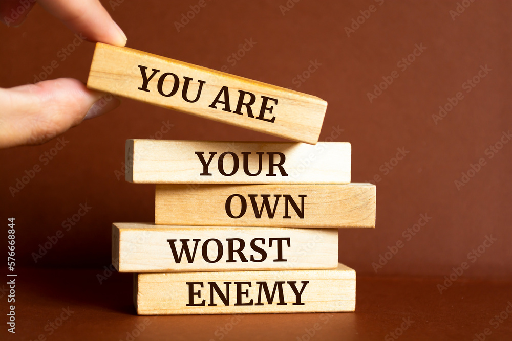 Fototapeta Wooden blocks with words 'You Are Your Own Worst Enemy'.