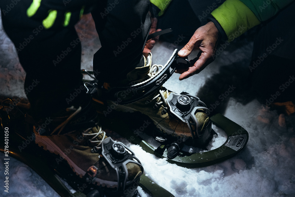 Fototapeta Randonnée nocturne en raquettes dans les montagnes de l'Alpe d'Huez, France