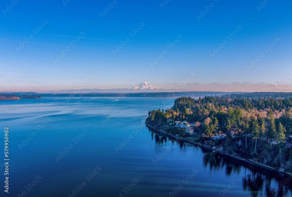 Fototapeta Mount Rainier and the Puget Sound from Tolmie State Park