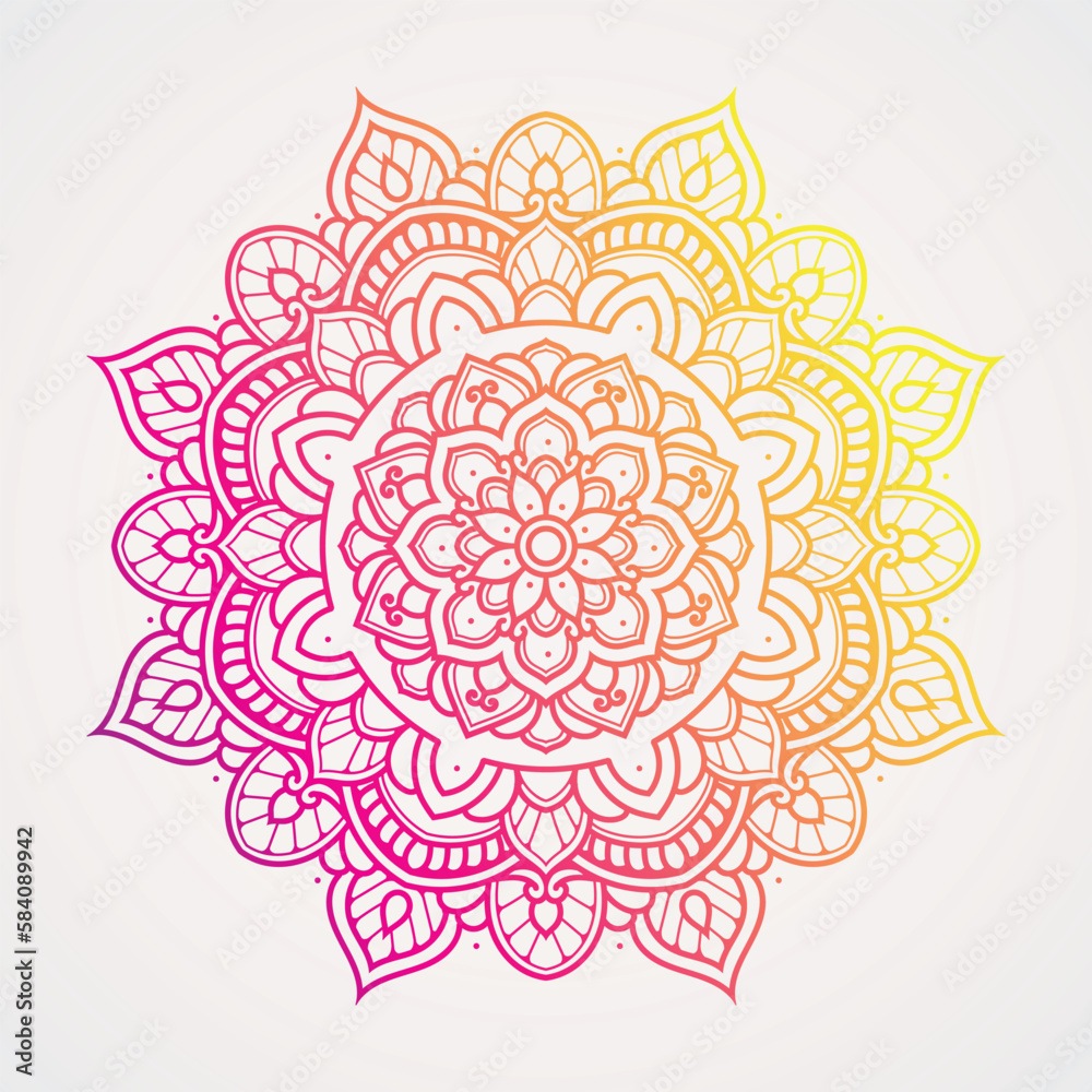Fototapeta Ornamental mandala with purple and yellow color combination