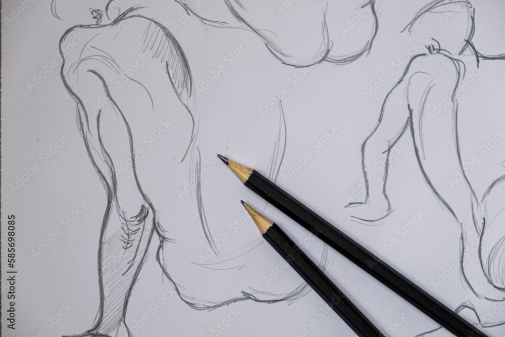 Fototapeta Dessin de nu masculin au crayon
