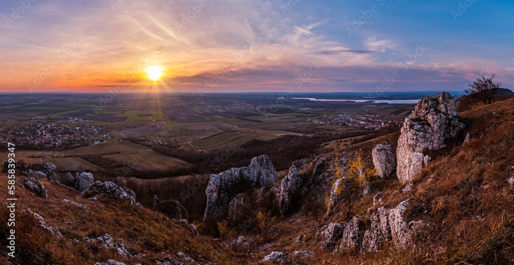 Fototapeta Beautiful sunset in the rocks of Pálava in South Moravia