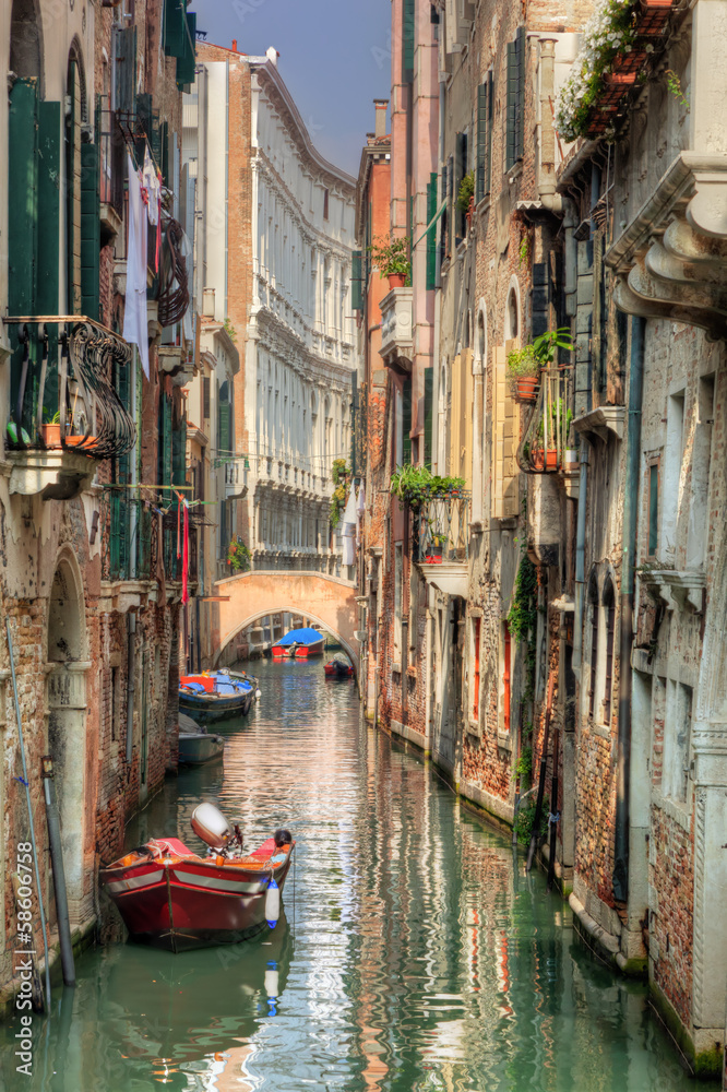Fototapeta Venice, Italy. A romantic narrow canal and bridge
