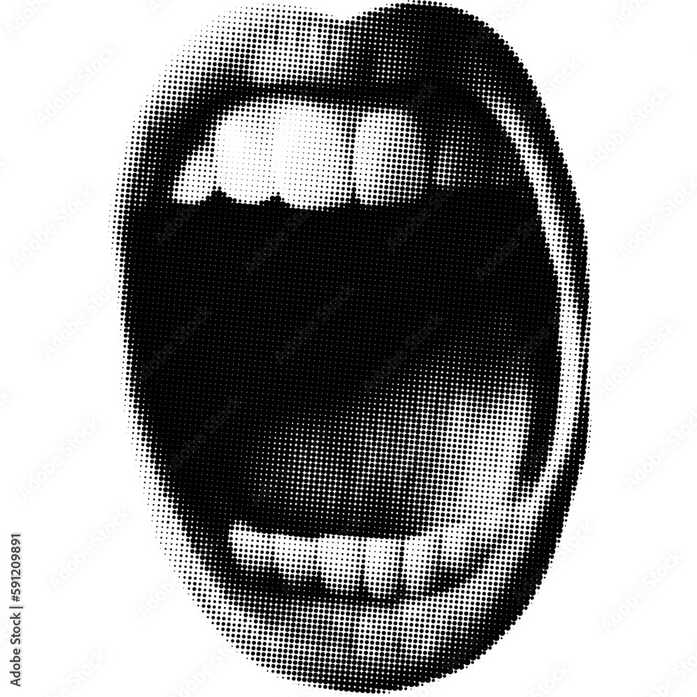 Fototapeta Opened woman mouth in scream as retro halftone collage elements for mixed media design