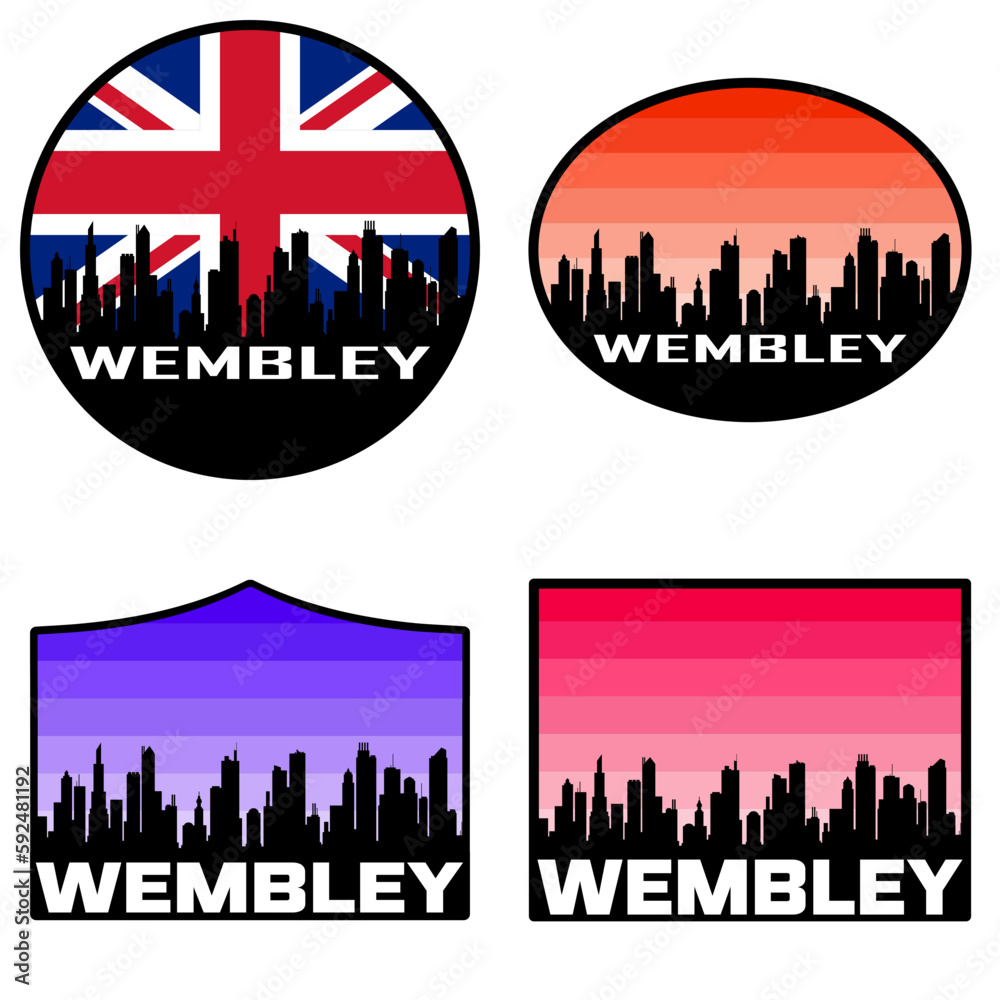 Fototapeta Wembley Skyline Silhouette Uk Flag Travel Souvenir Sticker Sunset Background Vec