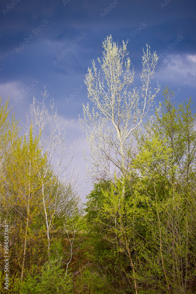 Fototapeta beautiful landscape with poplars under the cloudy sky