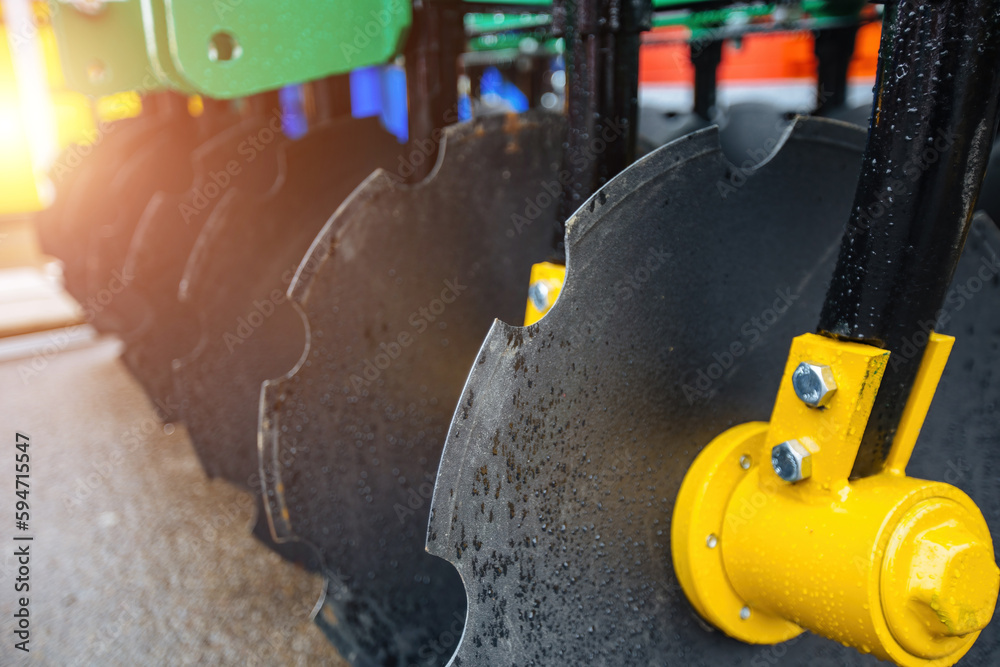 Fototapeta Working parts of new modern agricultural disc cultivator or harrow