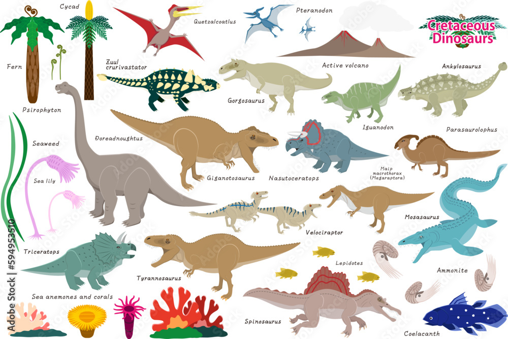 Fototapeta 白亜紀の恐竜達のセット。 ティラノ科の指の数を変更しています。バージョ