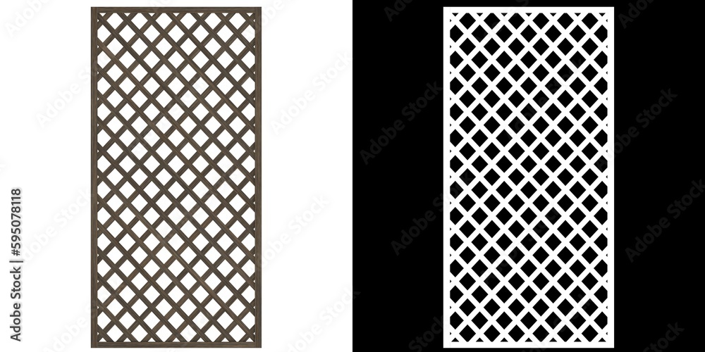 Fototapeta 3D rendering illustration of a rectangular wooden trellis panel module
