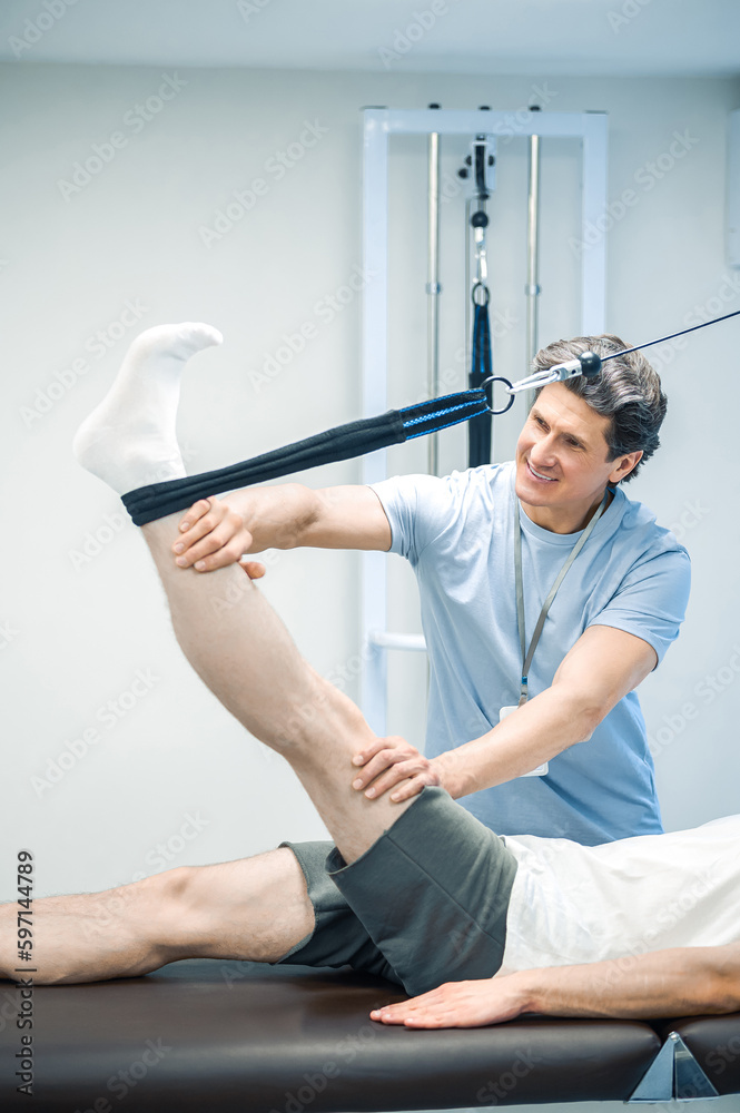 Fototapeta Physal therapist working with patients limb hyperextension
