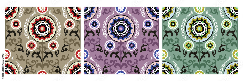 Fototapeta Suzani, vector seamless ethnic pattern with uzbek, turkish and kazakh motifs