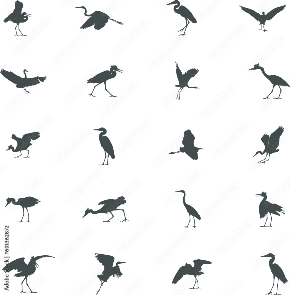 Fototapeta Heron silhouette, Heron SVG, Heron vector illustration, Bird silhouette, Heron icon set