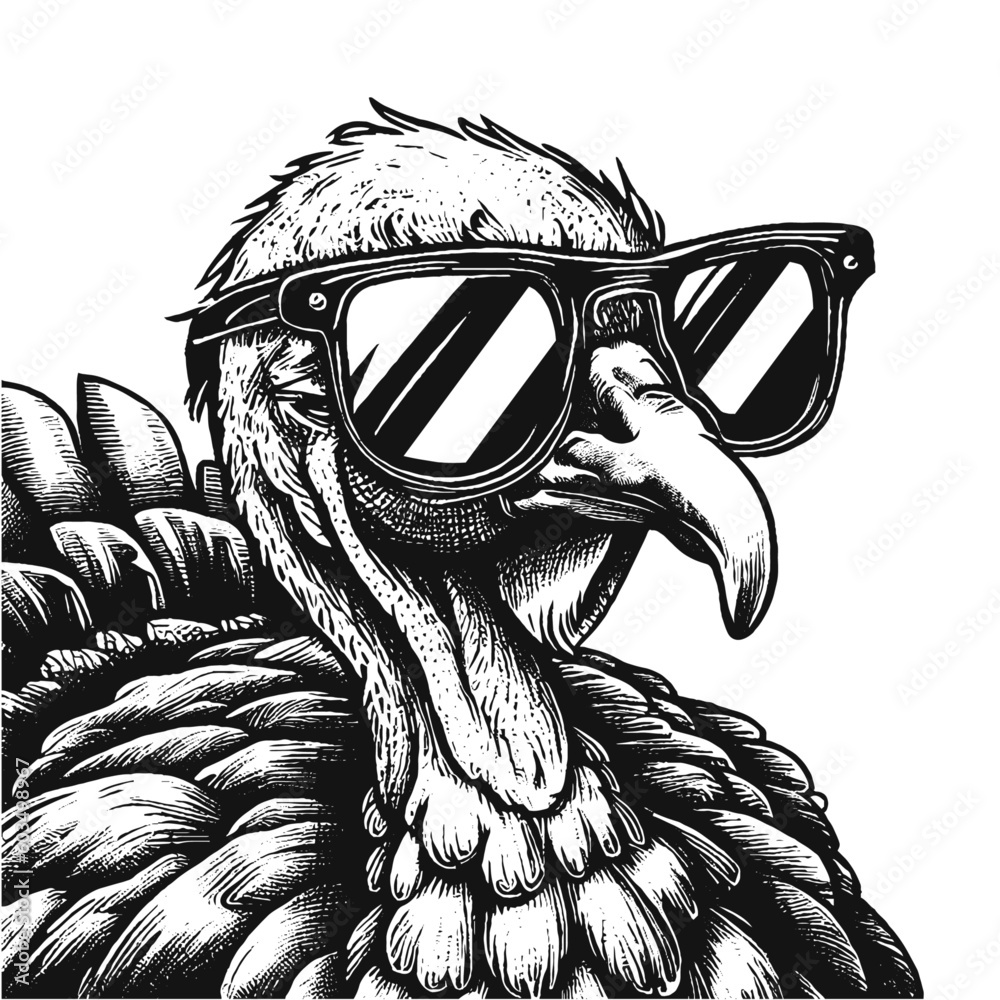 Fototapeta cool turkey wearing sunglasses close-up sketch